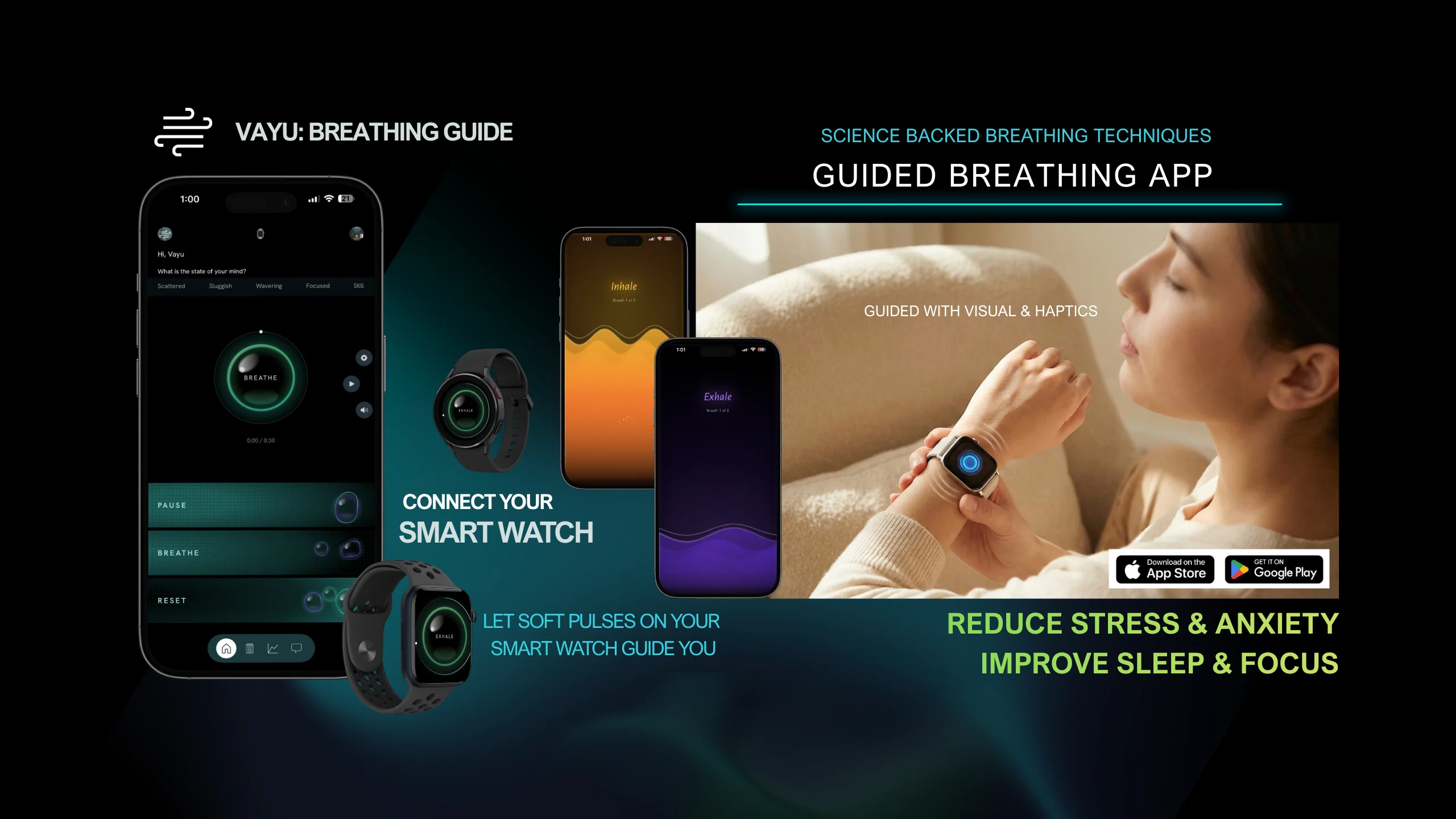 Vayu isn't just another breathing app - it's your mindful companion that aligns breath with intention throughout your day. From energizing morning practices to calming nighttime sessions, each breath serves a purpose: awakening your potential at dawn, sharpening your focus during the day, finding peace in the evening, and embracing tranquility at night. We believe every breath is an opportunity for transformation, guiding you through a purposeful journey of well-being that adapts to your daily rhythm and personal goals.